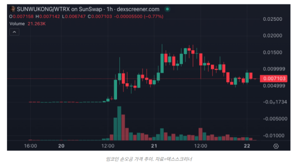 이 트레이더는 최근 출시된 트론 기반의 밈코인 ‘손오공(SunWukong, SUNWUKONG)’을 거래하며 이러한 성과를 거뒀다고 22일(현지 시간) 코인텔레그래프가 보도했다.