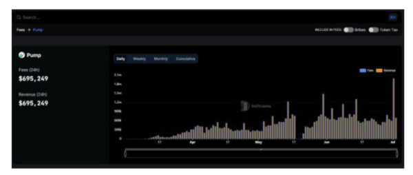 펌프펀, 하루 수익 $200만, 수수료 이더리움을 제치고 1위