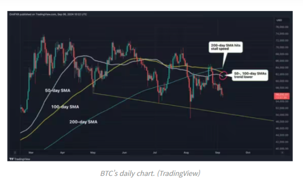 $55K 아래 하락한 비트코인 지지선은 어디? … $54K, $53K 아래, $50K 부근