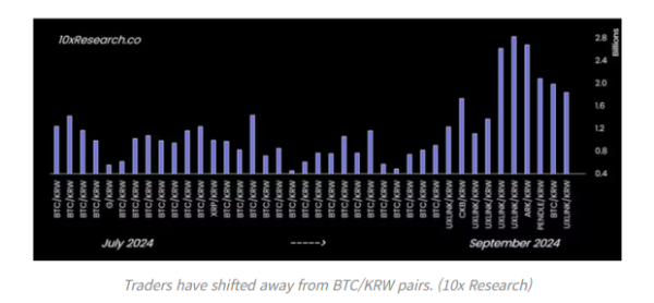 한국 트레이더들 비트코인 → 알트코인 이동 … 연준 금리 인하 후 강세 베팅 – 10x 리서치