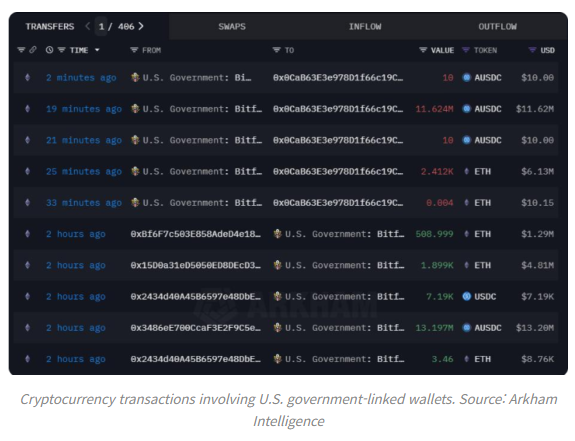 기사에 따르면 전일, 정부 관련 지갑에서 약 2000만 달러의 암호화폐가 도난당했다. 그러나 10월 25일, 아캄 인텔리전스(Arkham Intelligence)가 공유한 온체인 데이터에 의하면 해킹 당한 자산의 약 88%에 해당하는 1930만 달러가 반환되었다. 미국 정부는 반환된 자산을 새 지갑으로 즉각 이관한 것으로 확인됐다.