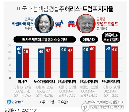 미국 대선 해 11월 상승률 3.46%…10월은 하락폭 -2.89% 평년 대비 커