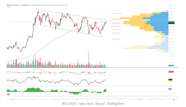 기술적 분석가들에 따르면 비트코인은 현재 저항 구간을 돌파해 2개월 만에 6만6000 달러를 넘어설 준비를 하고 있다. 이를 성사시키려면 현물 거래량 증가 또는 레버리지 롱 포지션이 6만5000 달러의 매도벽을 뚫는 모습을 보여야 한다.