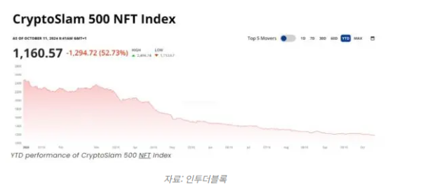 NFT 시장, 2024년에도 약세…크립토슬램 500 지수 50% 이상 하락