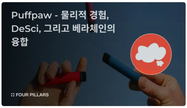 - 또한 Puffpaw는 사용자가 자신의 흡연 데이터를 소유하고 잠재적으로 수익화할 수 있도록 함으로써 탈중앙화 과학(DeSci)을 활용한다. 이 데이터는 연구 및 제품 개발 목적으로 베이프 회사, 의료 서비스 제공자, 인공지능 회사에게 유용할 수 있다.