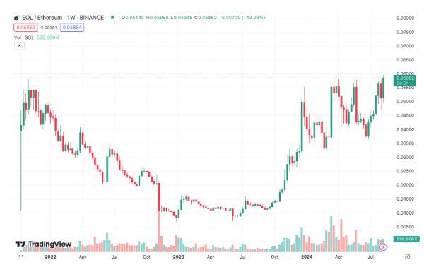 SOL/ETH 비율, 사상 최고치 기록