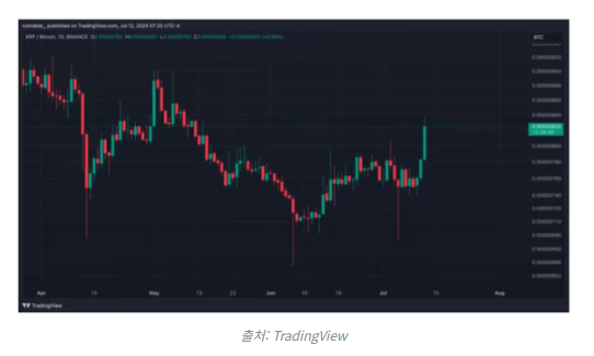 XRP, 비트코인 대비 2개월 최고 수준