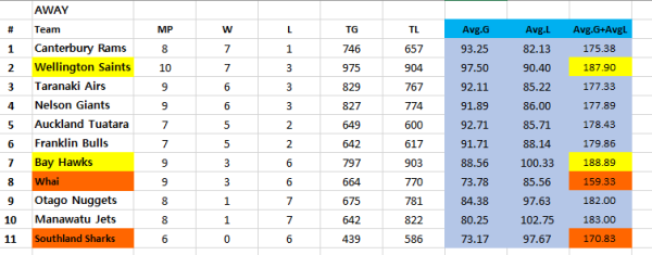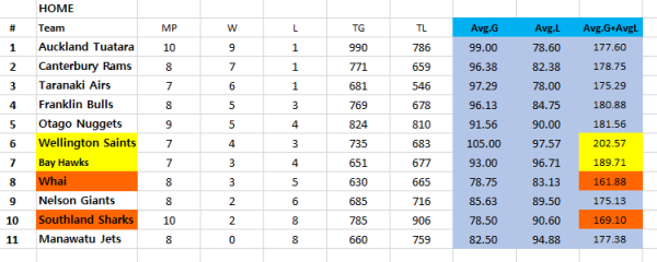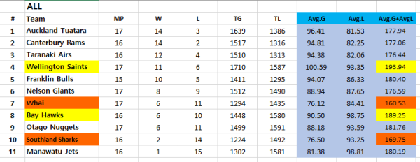뉴질랜드 농구 NBL 팀별 평균 득실 및 오버