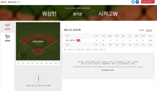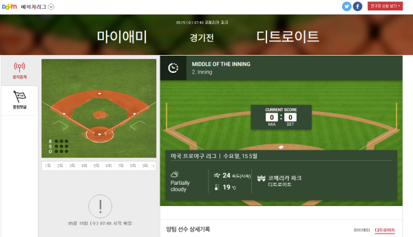 2회말이 된 디트로이트 vs 마이애미:역시 문자중계 개점휴업