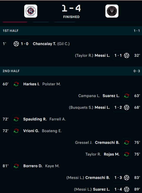 뉴잉글랜드 레볼루션 (홈) 1: 4 인터 마이매미(원정)