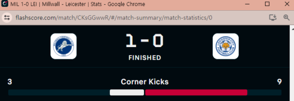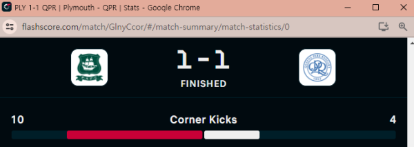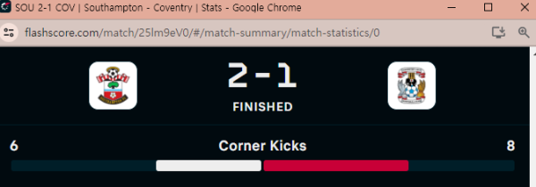 오늘 있은 영국 챔피언쉽 전 경기 코너킥 오버가 났습니다.