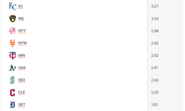 MLB 2024 시즌 불펜진 방어율 순서입니다