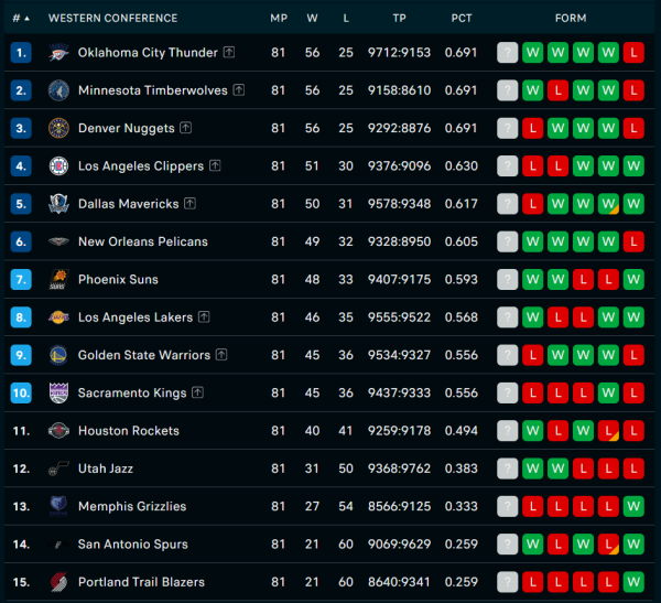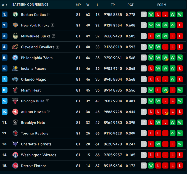 플레이오프 진출은 확정지었으나 아직 순위가 미확정인 팀들이 있으므로