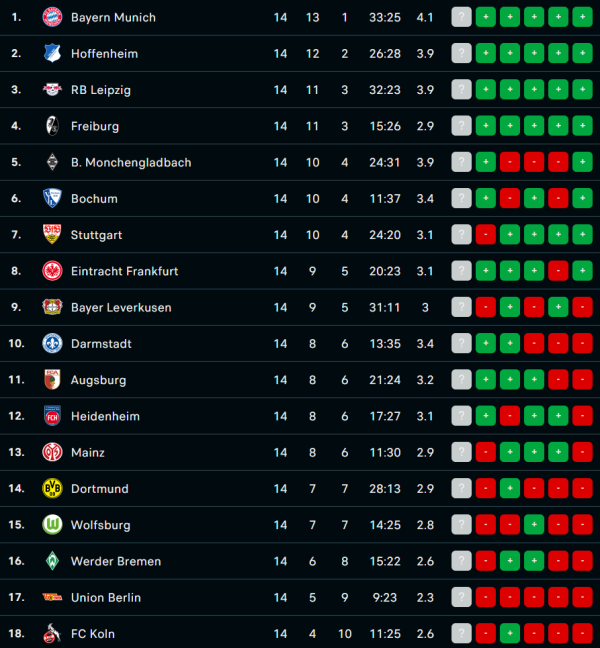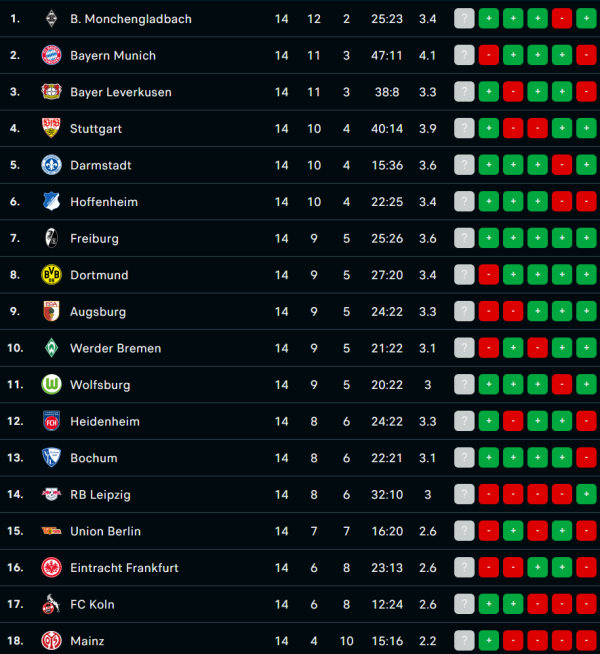 1. Bayern Munich, B. Monchengladbach: