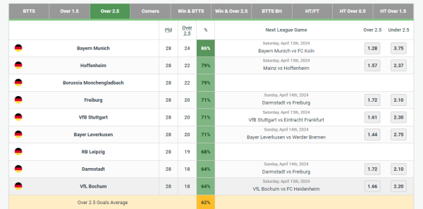 독일 분데스리가 2.5 골 최다팀들